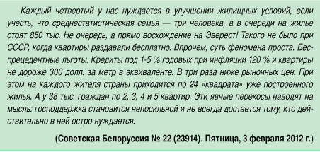 Ответ прост - государство выполняет роль регулятора, то есть создаёт условия, при которых частникам всё равно, какие строить дома - доходные или социальные. А именно – предоставляет возможность кредитоваться под очень низкую процентную ставку в специальных банках, а также гарантирует, что бессрочно будет являться арендатором всего дома и оплачивать частному собственнику коммерческую стоимость аренды – в случае строительства «социального» арендного дома. То есть частная компания ежемесячно получает от государства коммерческую стоимость аренды, а государство в роли арендатора само распоряжается квартирами: сдает их в аренду населению по тем ставкам, которые устанавливаются законодательством для каждого социального пласта. Для кого-то это бесплатная аренда, а кому-то квартира будет предложена за 80 процентов коммерческой стоимости. Но при этом всю ответственность за эксплуатацию дома несёт собственник – коммерческая компания. Сегодня же в Беларуси государство как застройщик и владелец такого дома тратит деньги из бюджета. А зачем единовременно изымать из бюджета огромные суммы, когда можно привлечь, к примеру, крупную иностранную компанию, которая бы построила арендные дома? Государство, будучи арендатором этого дома, в итоге за 30 лет потратит ту же сумму, за которую построило бы дом, но маленькими частями - разница для бюджета существенная. |