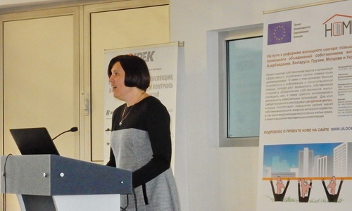 С точки зрения практика-управляющего построила свою презентацию Алина Жесткова, директор областного ресурсного Центра эффективного управления жильём, Харьков. Она привела пример сотрудничества с местным органом самоуправления. Так, например, программа курса «Организация и управление деятельностью объединения совладельцев многоквартирного дома» работает в Харькове с 2009 года и более 1000 человек смогли изучить эту программу, а реализация программы полностью финансируется за счёт бюджета г. Харьков. Выход есть всегда - главный мотив выступления Алины поддержали участники конференции.