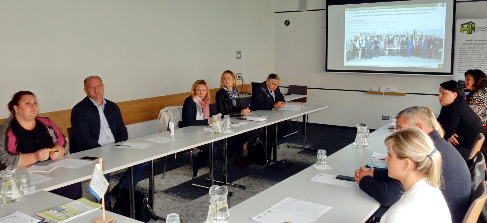 Знакомство участников с целями и задачами проекта «Разработка инструментов взаимодействия и межотраслевого сотрудничества для профессионального управления недвижимостью» состоялось через презентацию Геннадия Калёнова. В частности, он подробно рассказал о Программе поддержки Беларуси. Программа поддержки Беларуси (ППБ) «Преодолевая границы» реализуется с 2002 года. Ответственным за ее выполнение является Дортмундский международный образовательный центр совместно с Минcким международным образовательным центром имени Йоханнеса Рау. С момента утверждения Программы поддержки Беларуси были успешно реализованы восемь этапов: пилотный этап в 2002 году, второй этап Программы в период с 2003 по 2004 год, третий этап в 2005-2006 гг., четвертый с 2007 по 2008 гг., пятый в 2009-2011 гг., шестой в 2012-2014 гг., седьмой в 2014-2016 гг. и восьмой с 2016 по 2019 годы. В июне 2019 года начался 9-й этап Программы поддержки, который продлится по май 2022 года.