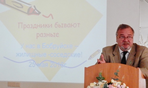 Геннадий Калёнов, руководитель проекта ППБ FpB 1650, выступил с презентацией о роли городских жилищных ассоциаций в управлении жильём на принципах устойчивого развития. В частности, он привёл пример, когда управляющие Узбекистана, в 2010 году поторопившись создавать хаотичный рынок жилья, теперь просят помощи у Беларуси, которую тогда критиковали за излишний консерватизм и «советскость». Поэтому только системность и последовательность в работе приносит результат, «прыжки в будущее» в нашей сложной сфере невозможны. Задавать такое поступательное движение для развития сферы управления могут и должны городские жилищные ассоциации, действующие на принципах устойчивого развития.