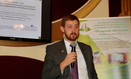 В рамках сотрудничества с Международной Ассоциацией Менеджмента недвижимости (МАМН) Ассоциация «Мозырский собственник» осуществляет работу в проектах, направленных на систематизацию деятельности управляющих недвижимым имуществом и совершенствование законодательства в сфере управления общим имуществом совместных домовладений в Республике Беларусь.