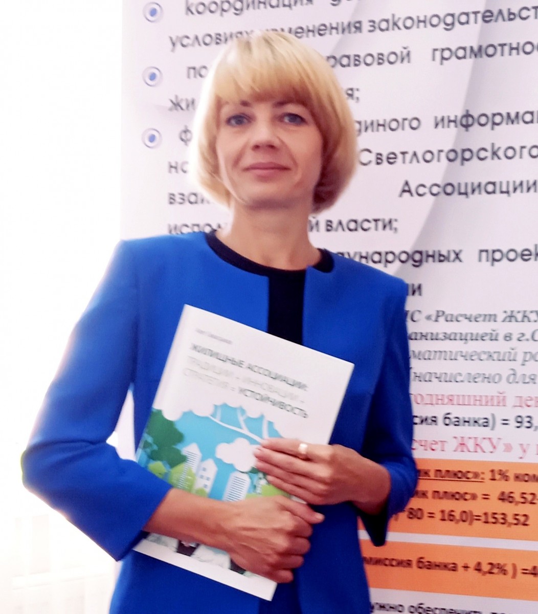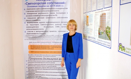 Заместитель председателя правления – Светлана Багрянцева. Курирует вопросы финансово-хозяйственной и проектной деятельности Ассоциации «Светлогорский собственник».